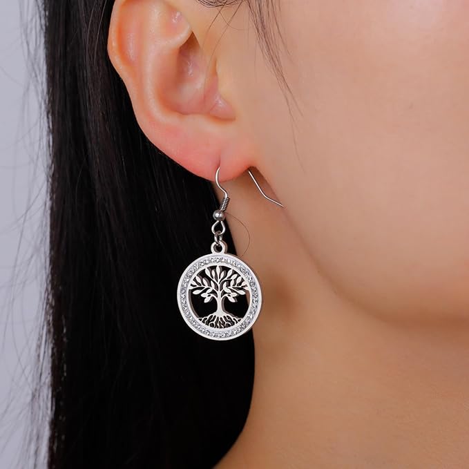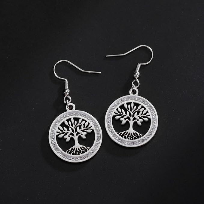 Boucles d’oreilles arbre de vie argentées classiques