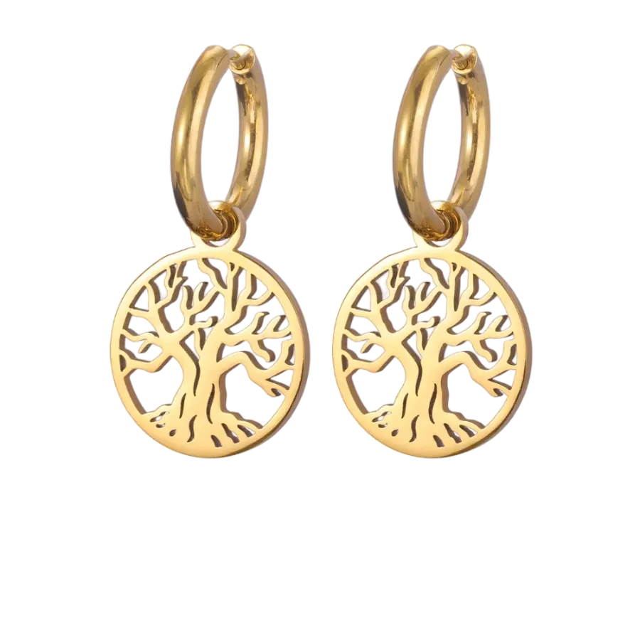 Boucles d’oreilles arbre de vie créoles dorées classiques
